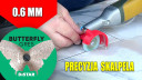 The Butterfly disc has a unique design and numerous advantages over galvanic discs. It is made from a solid diamond layer with a thickness of 0.6 mm, providing minimal cut width and a super clean edge. Thanks to its high rigidity, the disc doesnt deviate during cutting, yet due to its 45 mm diameter, it is very maneuverable. The main advantage of the solid diamond layer is its high durability and stable performance over time, which galvanic discs lack.